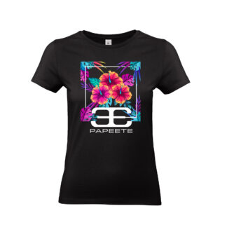 Taglio femminile, più corto, giromaniche con orlo arrotolato.